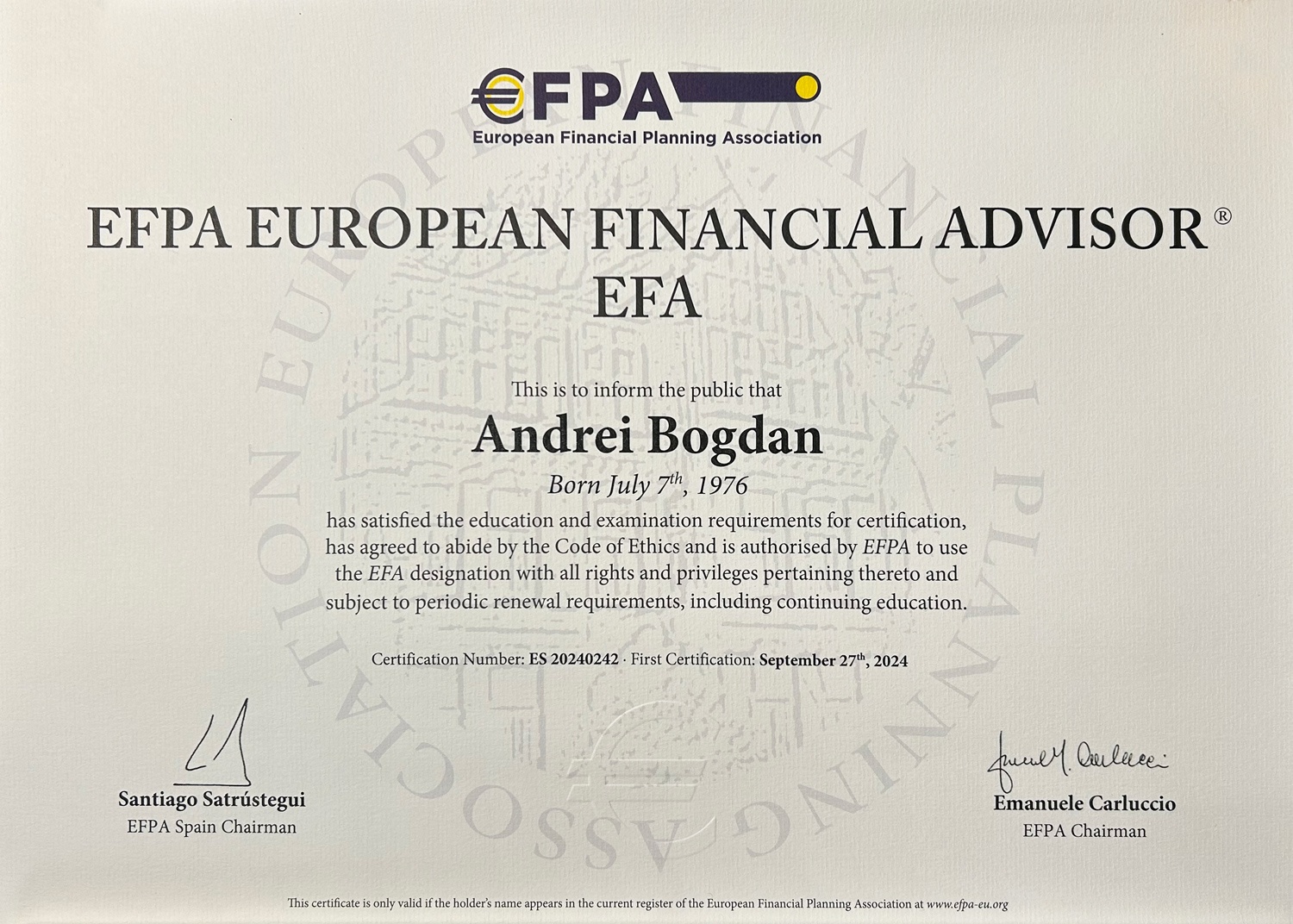 * certificatul se poate verifica aici: https://efpa-eu.org/index.php/register/