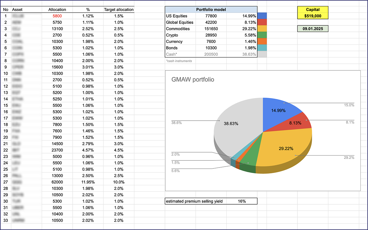 Iata cum arata o alocarea pe acest model de portofoliu la 9 Ianuarie 2026 (dupa prima rebalansare pe anul in curs):